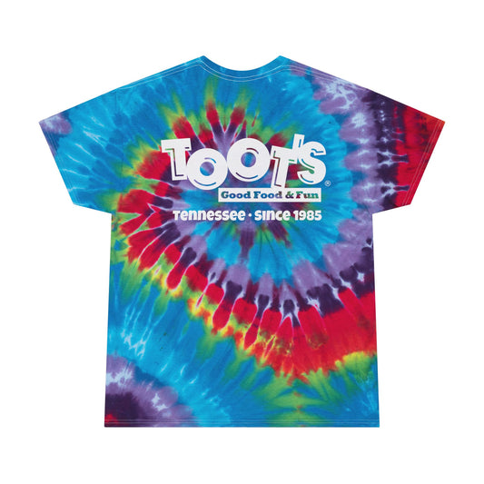 Toot's Tie-Dye Spiral Tee — Colorful Toot's Logo Vintage-Style T-Shirt